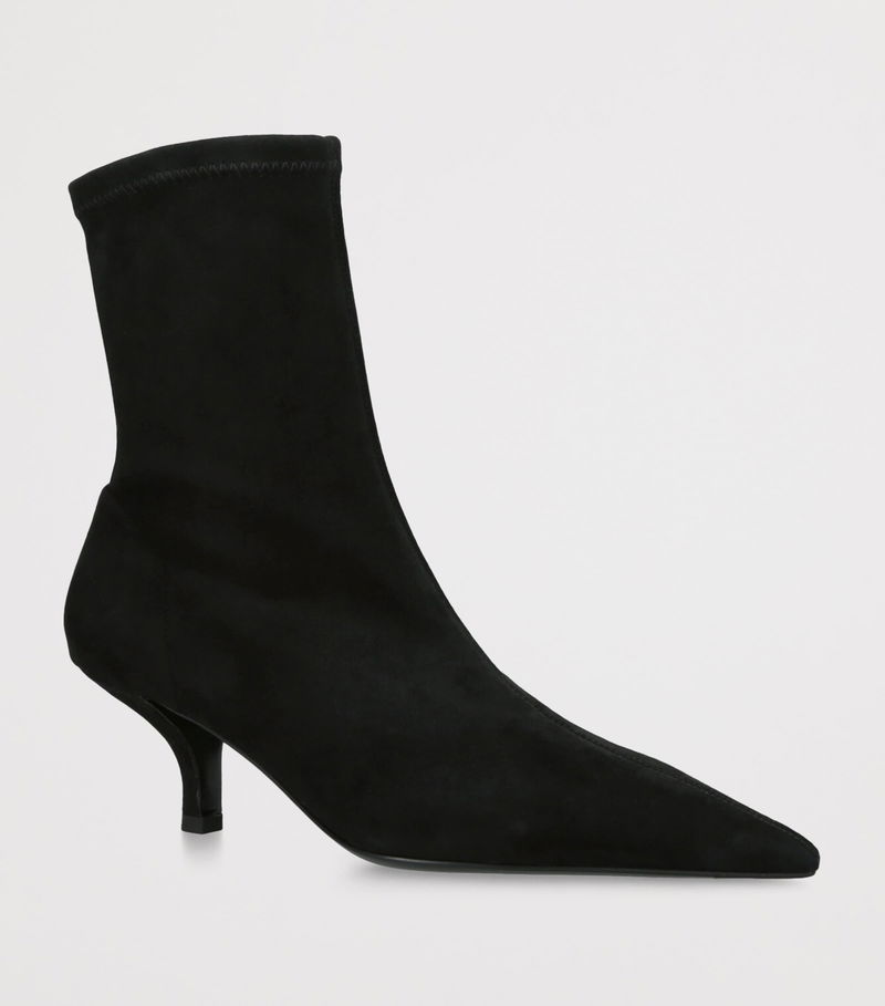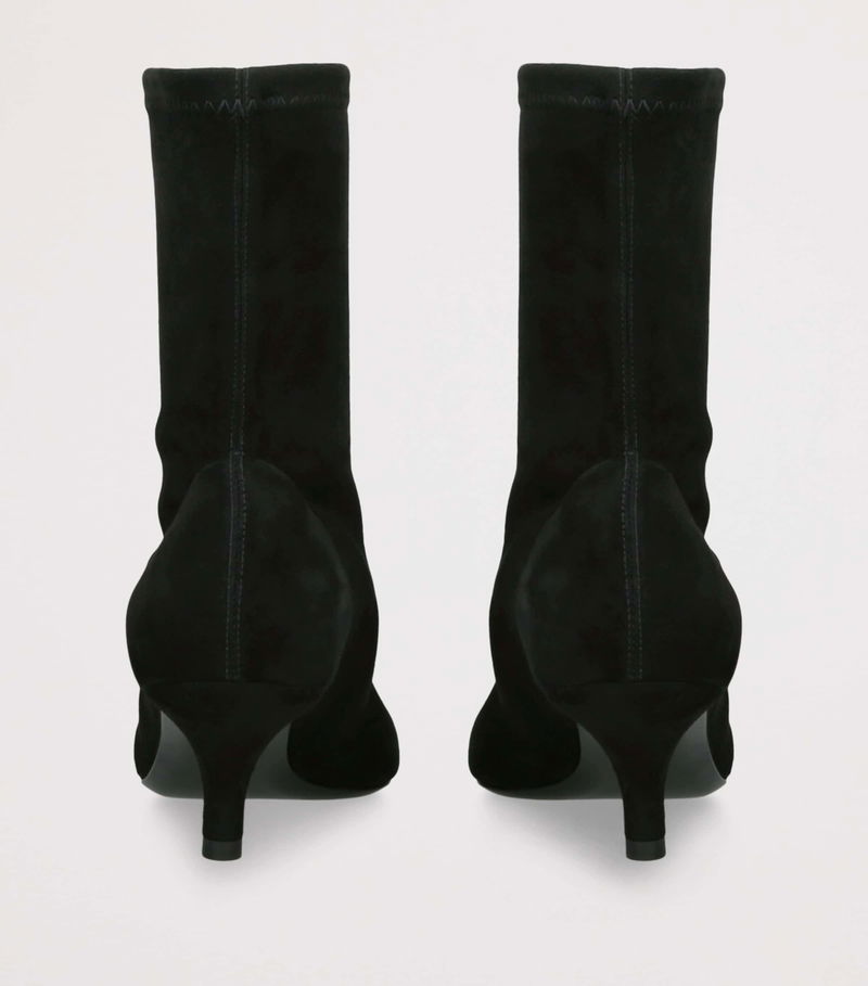 Set upon a refined kitten heel, the elasticated design offers sock-like wearability, while the pointed toe offers an elongating effect.