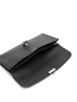 Brown, grained finish, T-lock clasp fastening, flap top, silver-tone hardware.