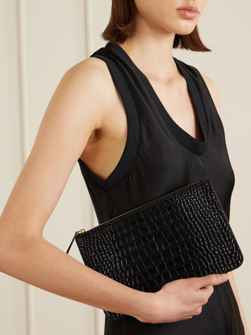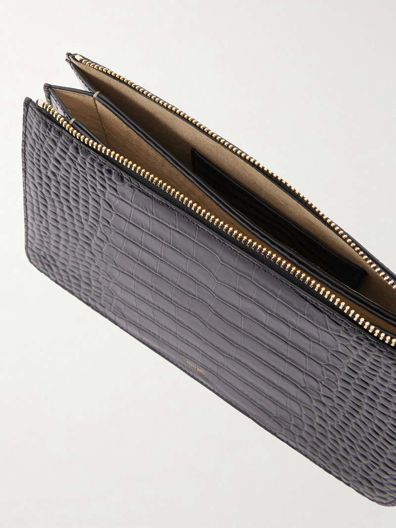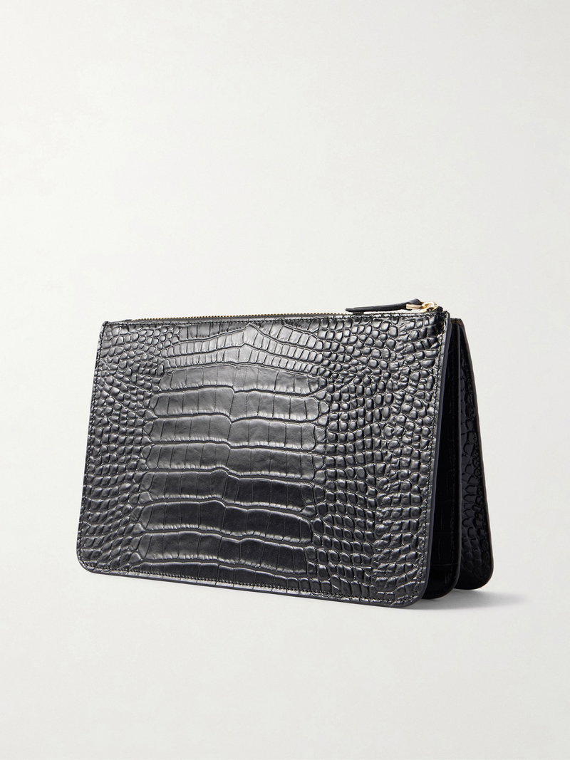 Threefold Croc-effect Leather Clutch