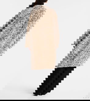 Tote Me's jacket is made from two-tone shearling that has a smooth black outer layer and a fuzzy cream underside. Designed for an oversized fit, it has rolled cuffs and hem that exposes the lining.