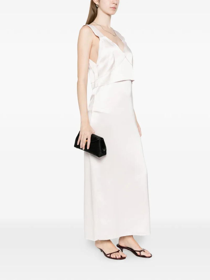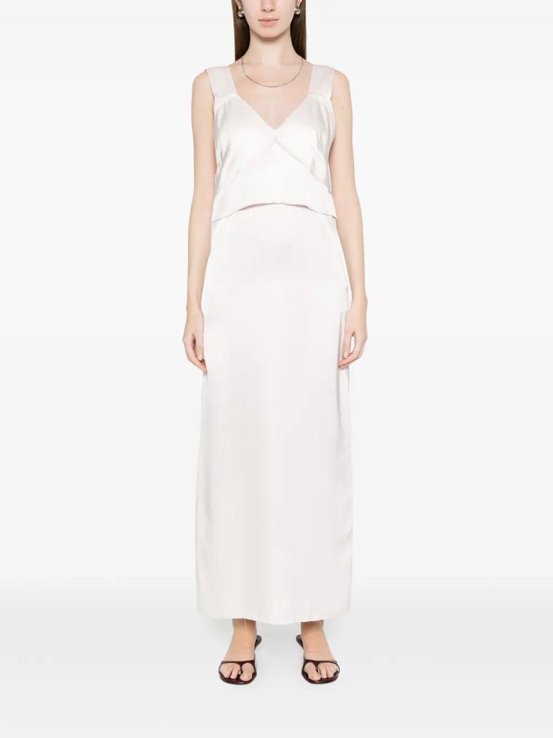 Light pink V-neck sleeveless adjustable shoulder straps.