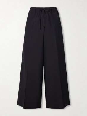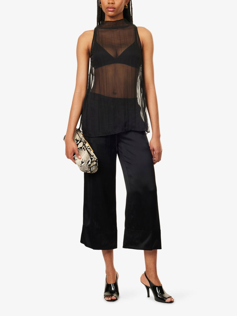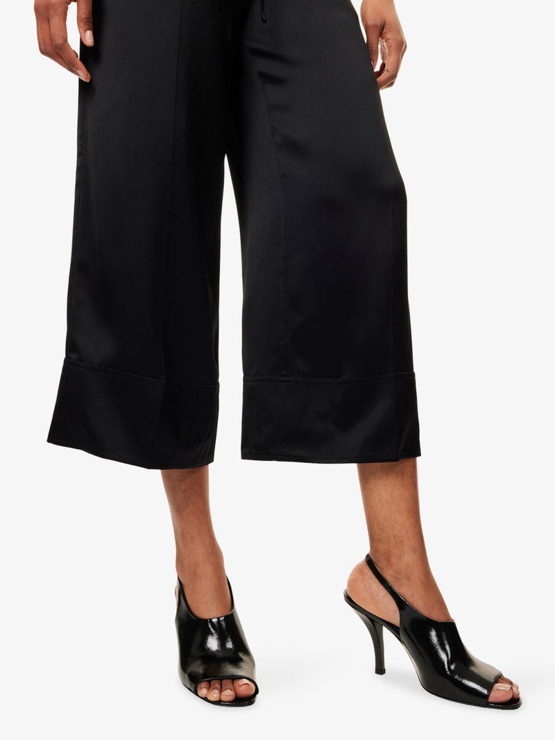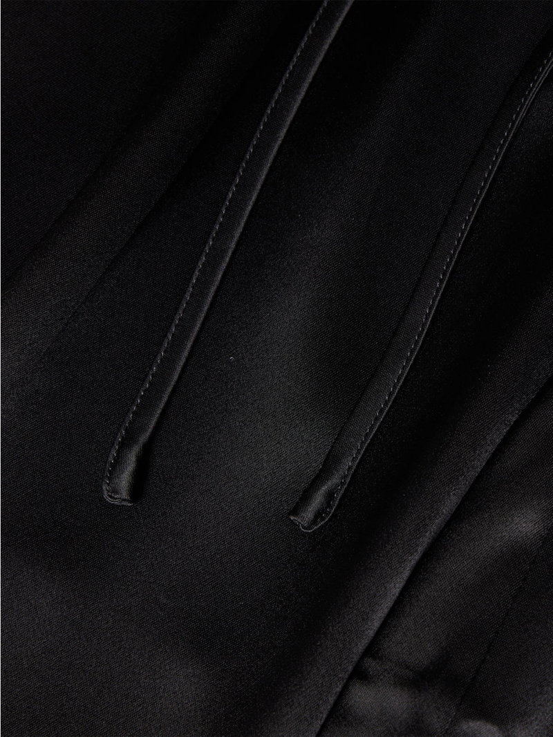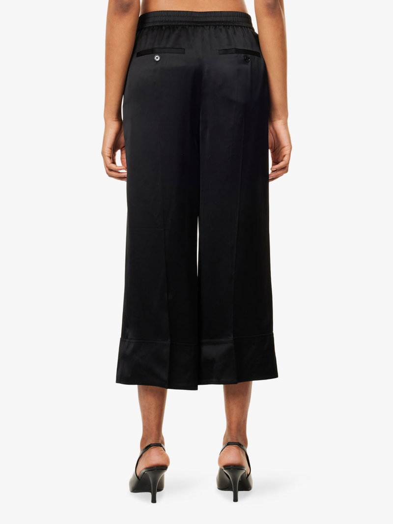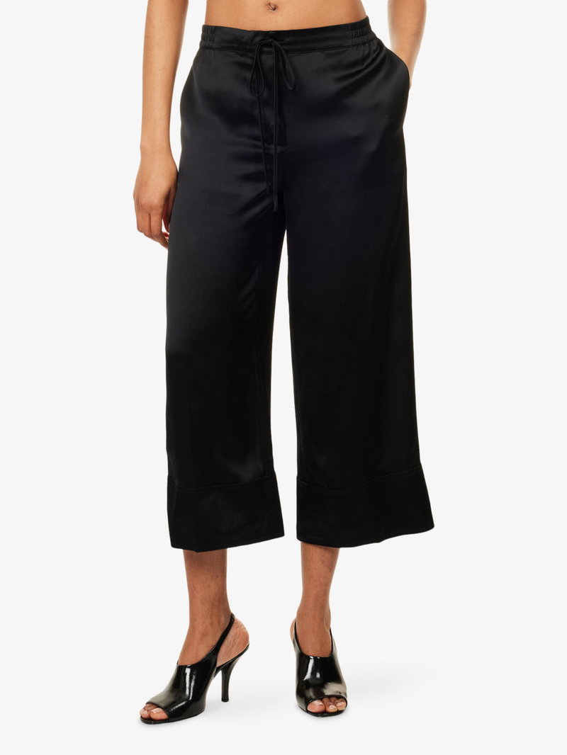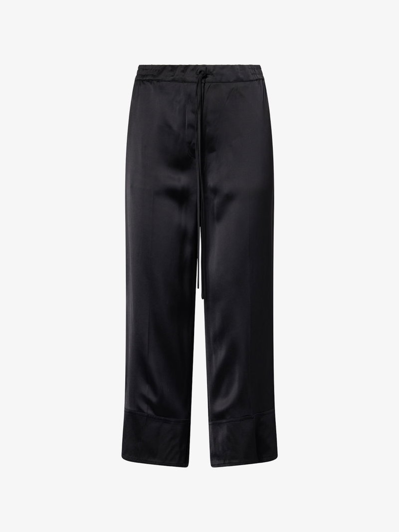 TOTEME satin trousers. Relaxed fit, mid-rise, wide leg, elasticated waistband, slip pockets at front.