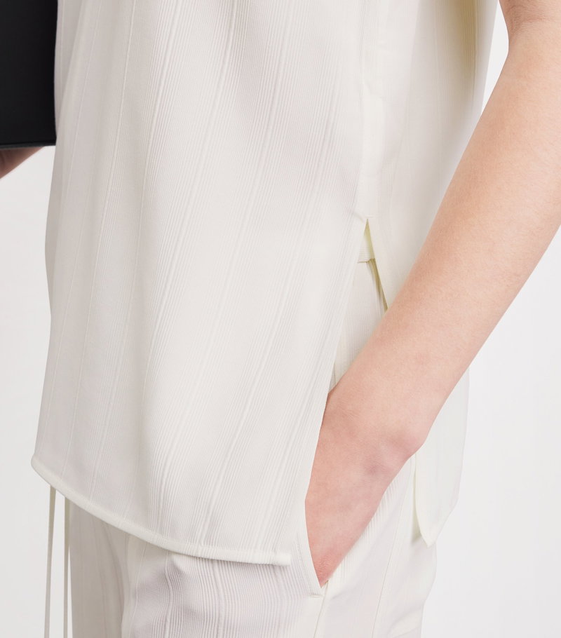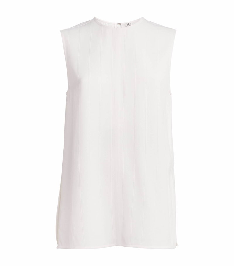 Renowned for its minimalist, uniform collections, toteme introduces this woven tank top to your spring/summer edit. Crafted from a silky soft blend of viscose and linen, its relaxed, elongated silhouette is elevated by a tonal stripe design that achieves a tactile finish.