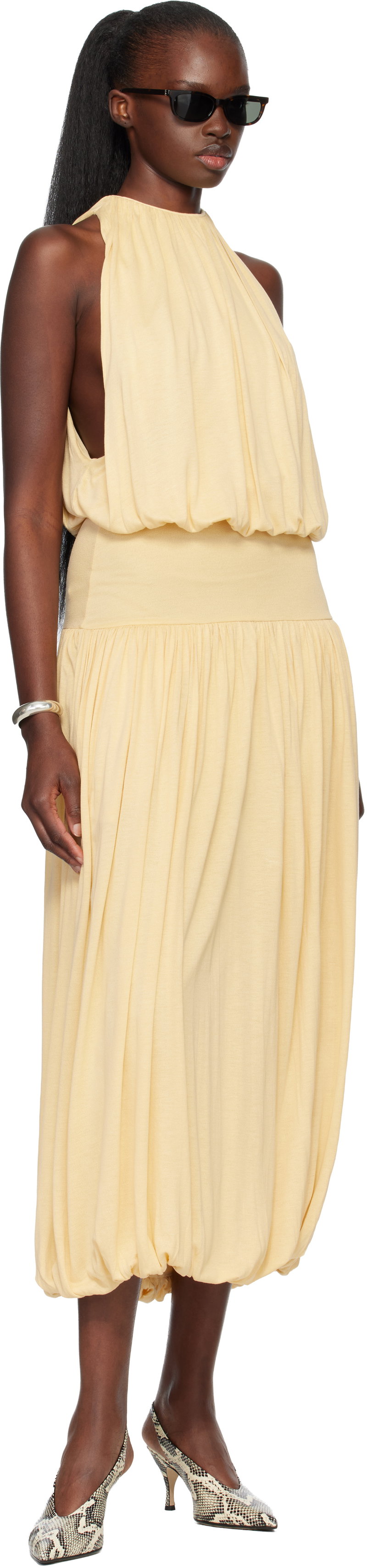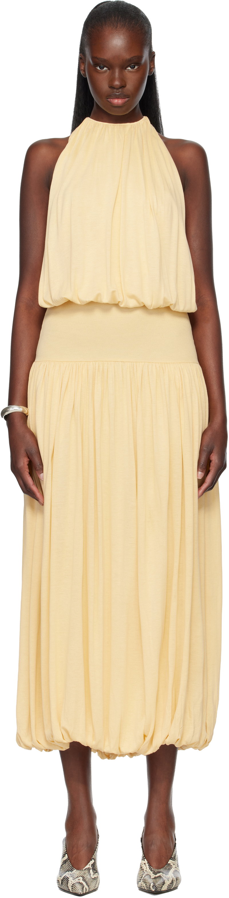 Shop More: Yellow Clothing Yellow Dresses Yellow Party Dresses Yellow Midi Dresses TOTEME Clothing TOTEME Dresses TOTEME Midi Dresses
