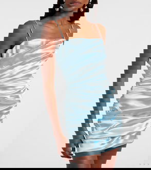 Rib knit FSC-certified viscose-blend dress. · Crewneck· Ruching throughout.
