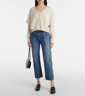 Knit cashmere sweater.· Layered construction· V-neck· Overlay at shoulders with self-tie fastening· Rib-knit hem and cuffs.