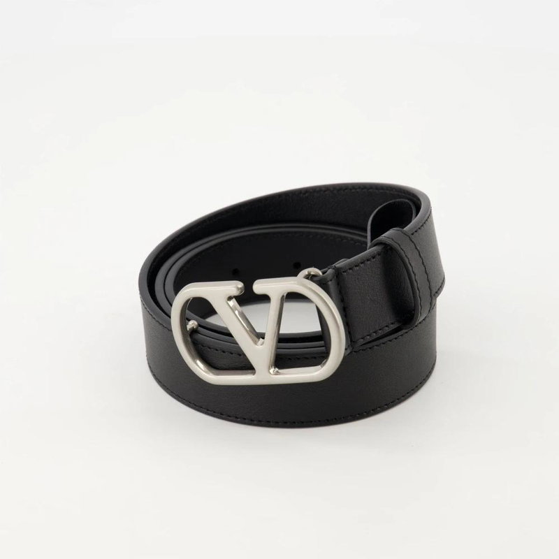 Black Leather VLogo Belt