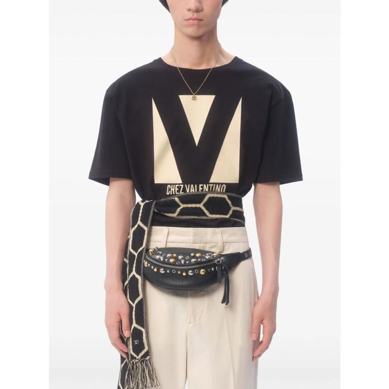 Garavani is better known by his mononym, Valentino. From the signature Rockstud leather shoes to richly embellished dresses, knitwear, tailoring and separates, Valentino Garavani pieces are characterised by a bold and playful use of colour and pattern, with a through line of glamour and luxury.
