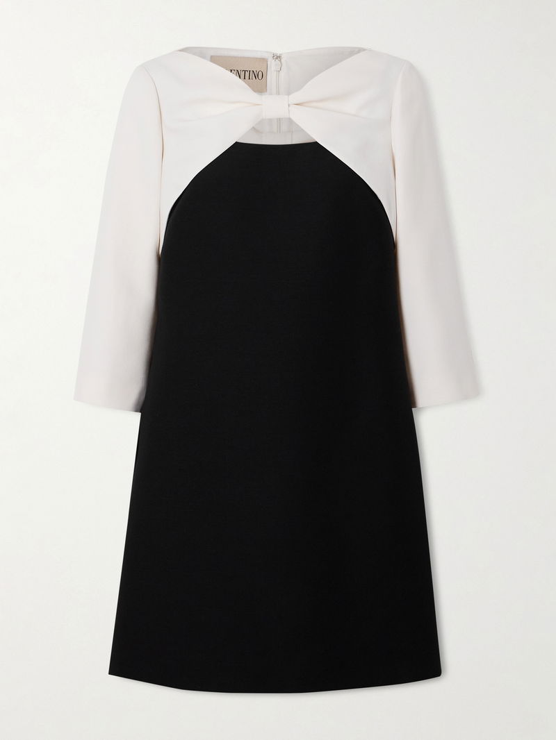 Bow-detailed Cutout Wool And Silk-blend Crepe Mini Dress