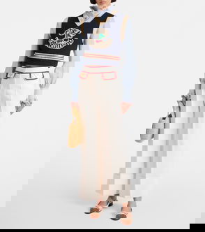 Garavani is better known by his mononym, Valentino. From the signature Rockstud leather shoes to richly embellished dresses, knitwear, tailoring and separates, Valentino Garavani pieces are characterised by a bold and playful use of colour and pattern, with a through line of glamour and luxury.