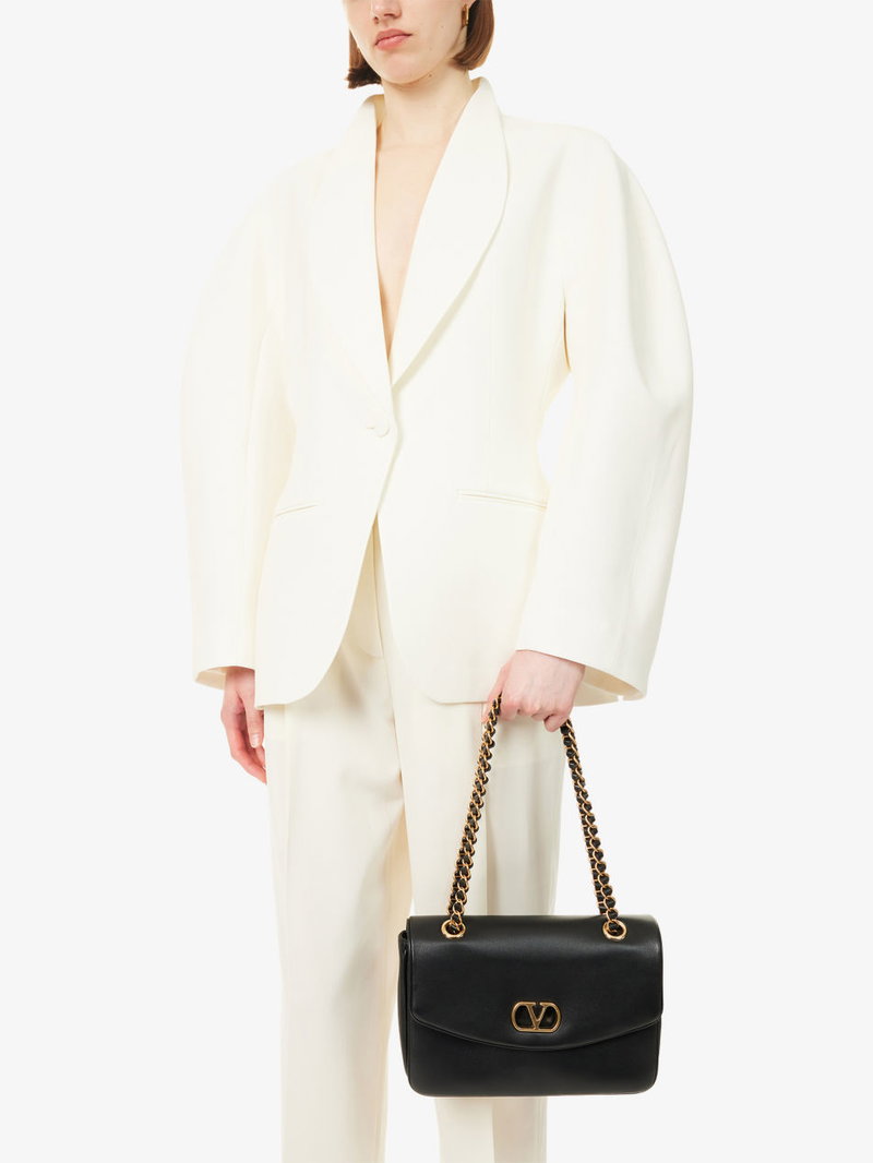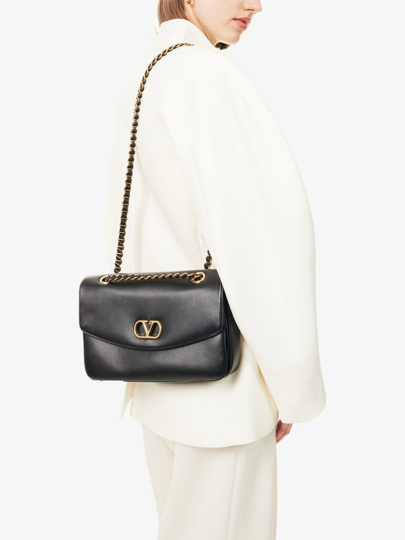 Garavani is better known by his mononym, Valentino. From the signature Rockstud leather shoes to richly embellished dresses, knitwear, tailoring and separates, Valentino Garavani pieces are characterised by a bold and playful use of colour and pattern, with a through line of glamour and luxury.