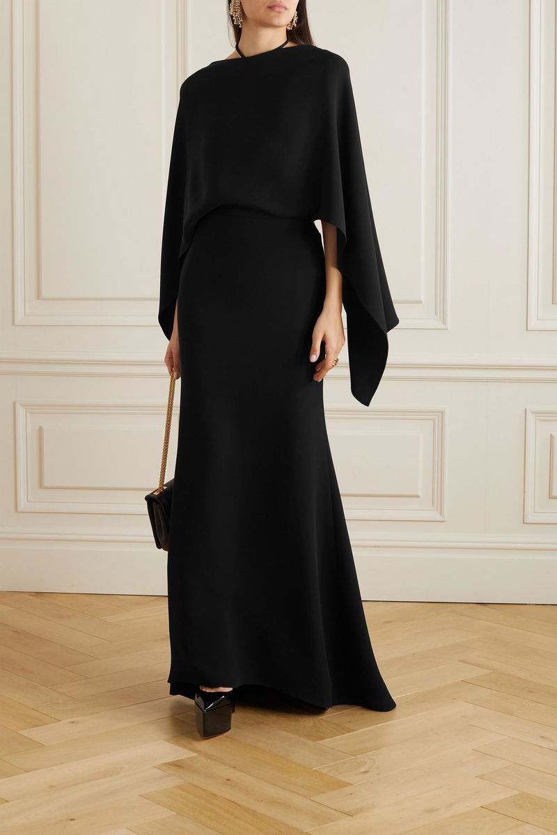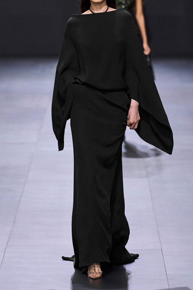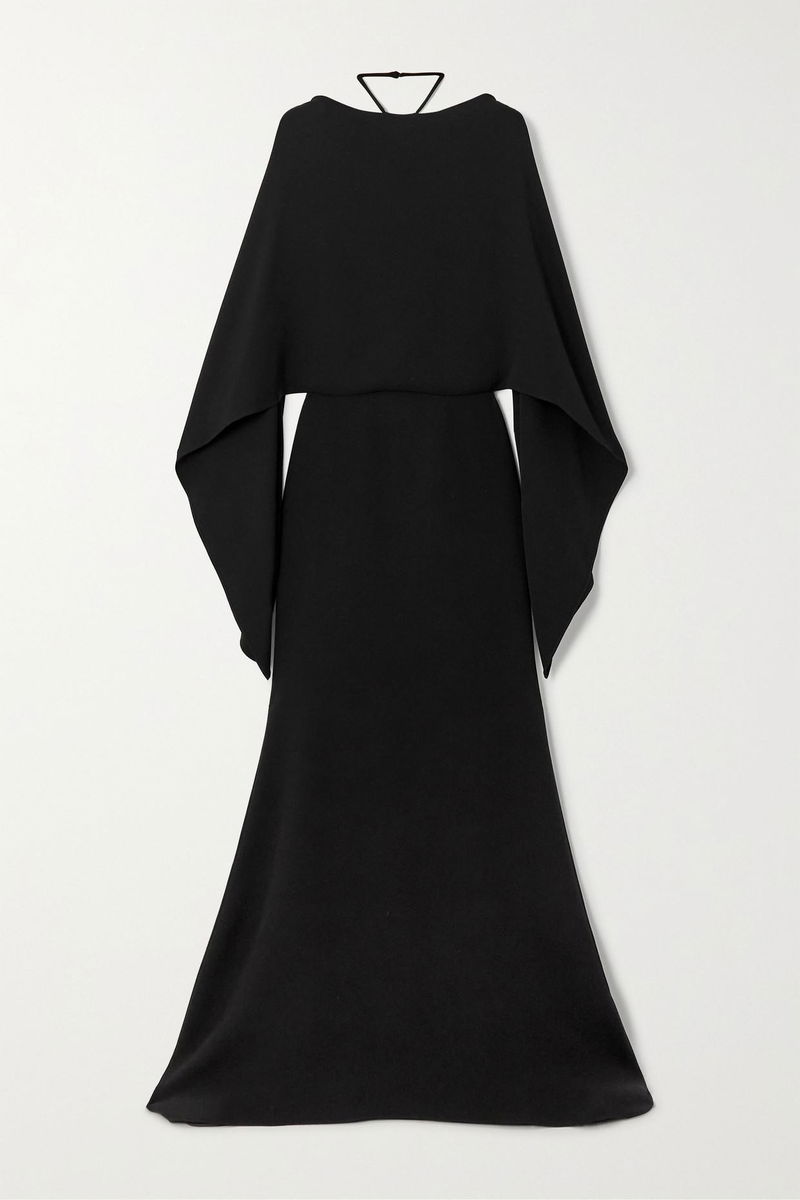 Soft, undulating silhouettes dominated Valentino Garavani's Spring '23 runway. A highlight from the show, this gown is crafted from pure silk so it skims the body as it falls and has flowing cape-effect sleeves and a dramatic open back. Elevate the floor-skimming hemline with heels.