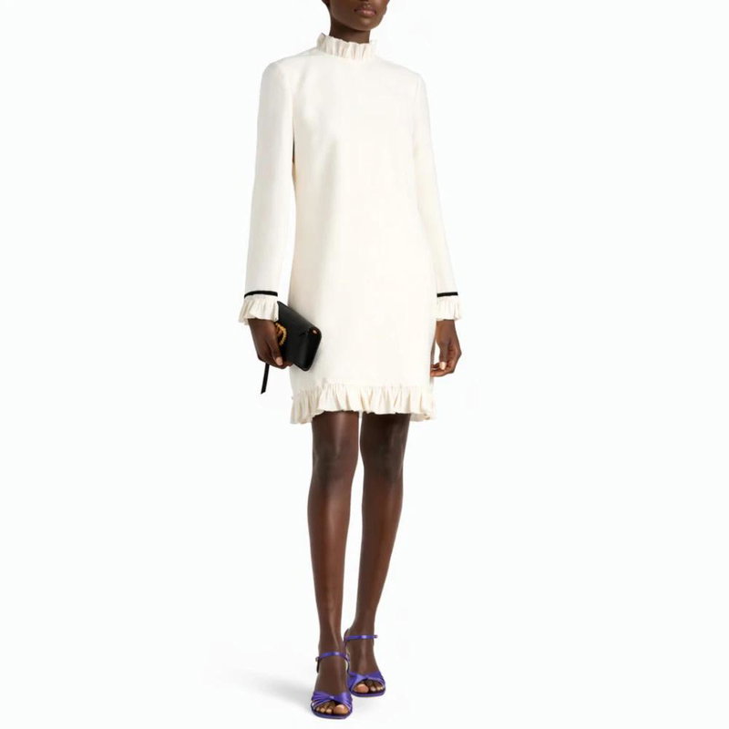 Valentino Garavani dress featuring ruffle detailing, a gathered collar and a back zip closure—styled for polished day-to-evening wear.