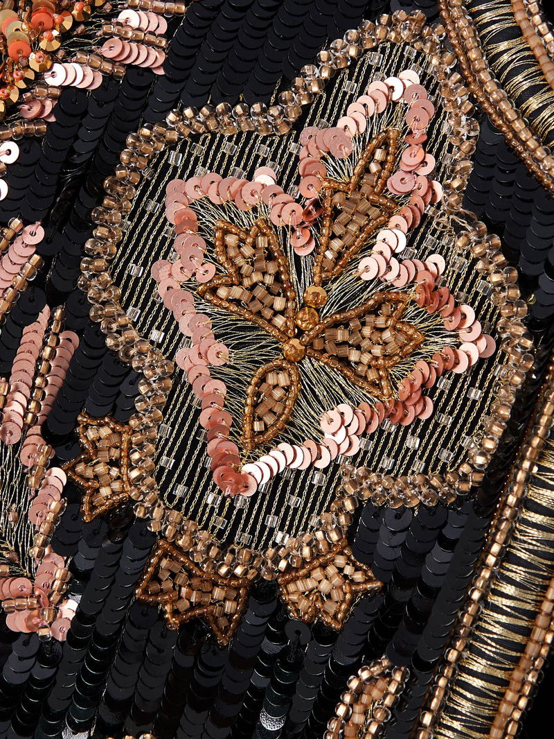 Valentino Garavani’s jacket is embellished with scores of light-catching beads and sequins depicting a beautiful botanical motif.