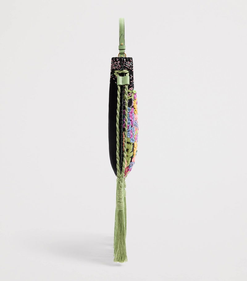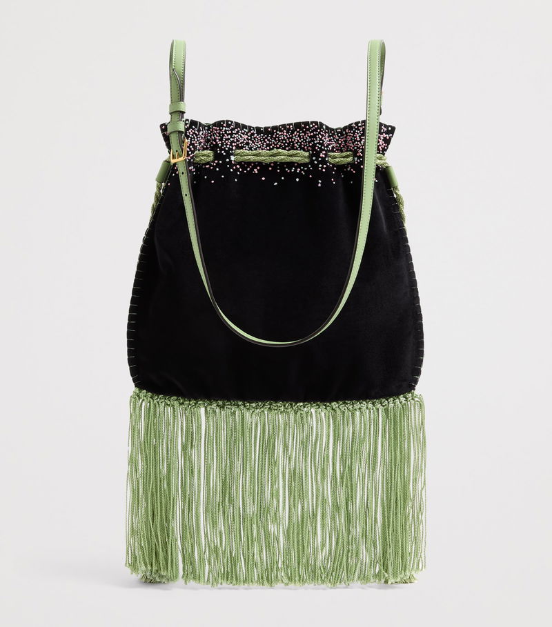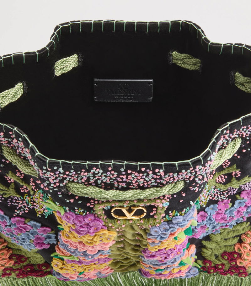 Roman extravagance was the guiding force behind creative director Alessandro Michele's debut collection for Valentino Garavani, where the Nellcôte style debuted. For the Alice shoulder bag iteration, the House takes the inspiration to the maximum, embroidering the exterior of the carrier with cascading florals, bouncy fringe and captivating beads.