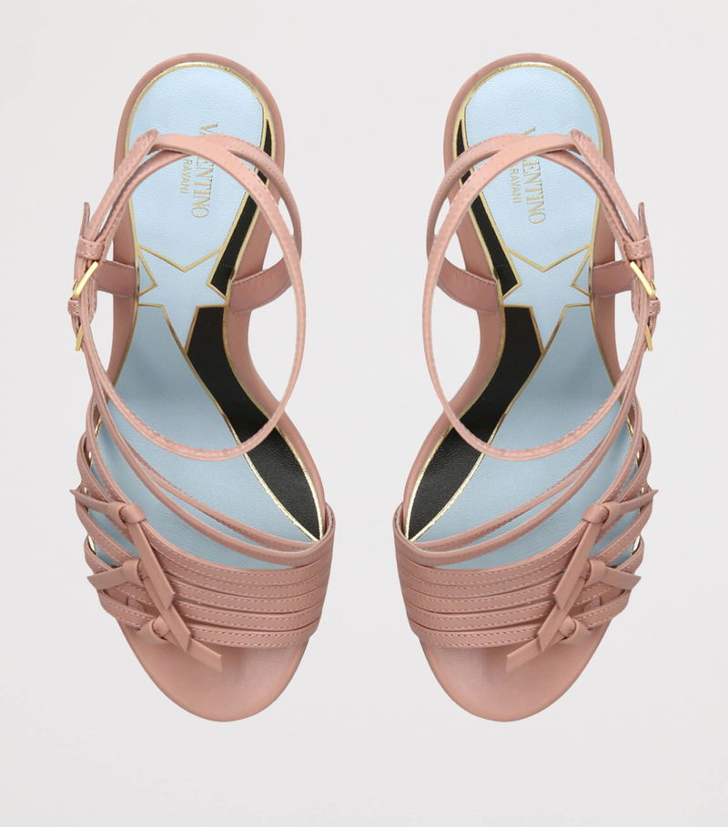 Since its inception in 1959, Valentino Garavani has sought to create with attention to detail, and the Nodine sandals are no exception. Crafted from leather, they are delicately characterised by a gathering of thin straps adorned with knotted bows for a romantic addition to an already charming pair.