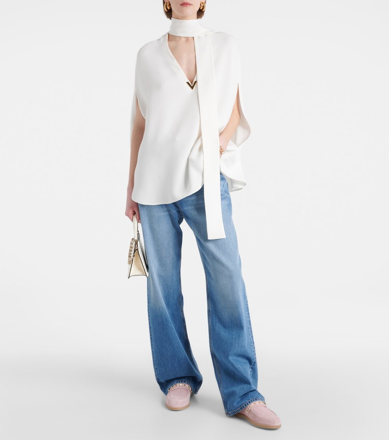 Garavani is better known by his mononym, Valentino. From the signature Rockstud leather shoes to richly embellished dresses, knitwear, tailoring and separates, Valentino Garavani pieces are characterised by a bold and playful use of colour and pattern, with a through line of glamour and luxury.