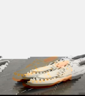 Garavani is better known by his mononym, Valentino. From the signature Rockstud leather shoes to richly embellished dresses, knitwear, tailoring and separates, Valentino Garavani pieces are characterised by a bold and playful use of colour and pattern, with a through line of glamour and luxury.