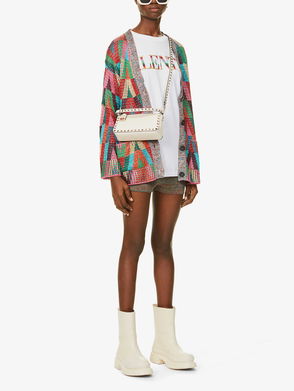 Garavani is better known by his mononym, Valentino. From the signature Rockstud leather shoes to richly embellished dresses, knitwear, tailoring and separates, Valentino Garavani pieces are characterised by a bold and playful use of colour and pattern, with a through line of glamour and luxury.