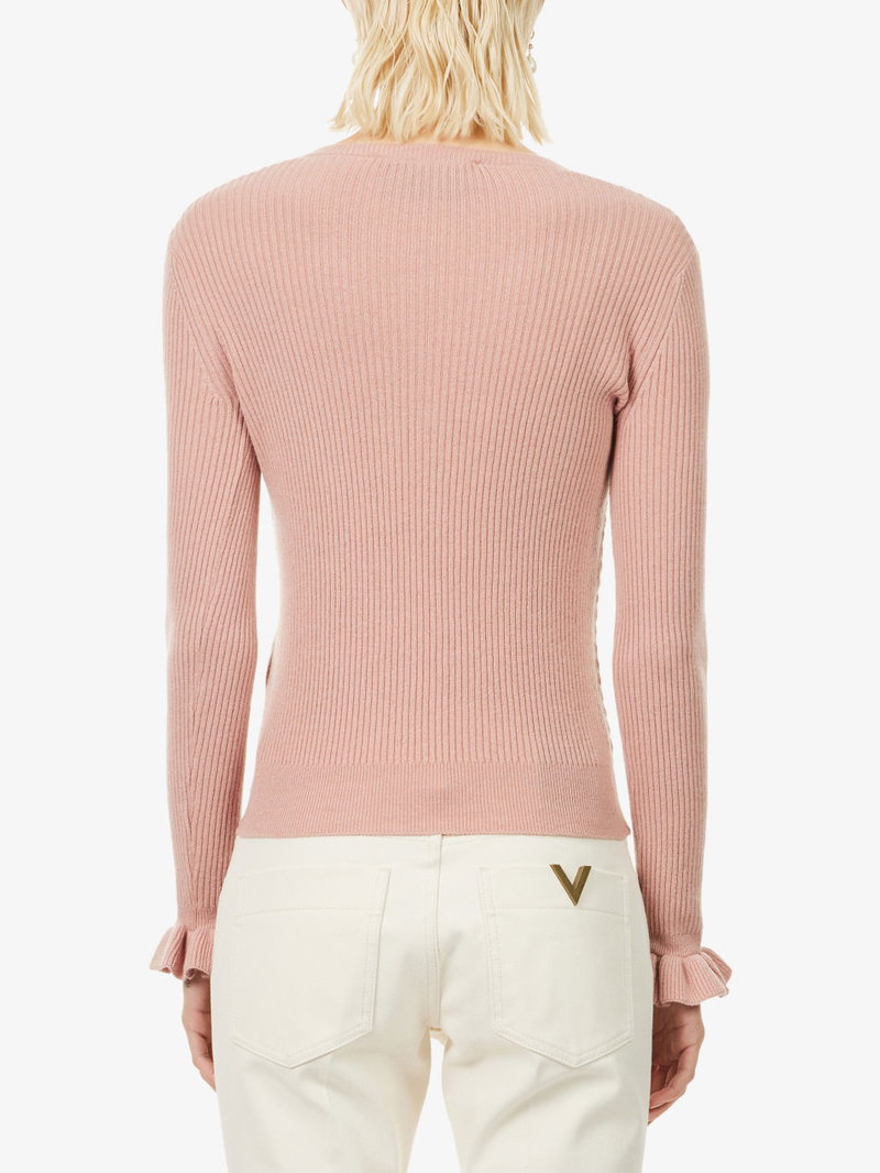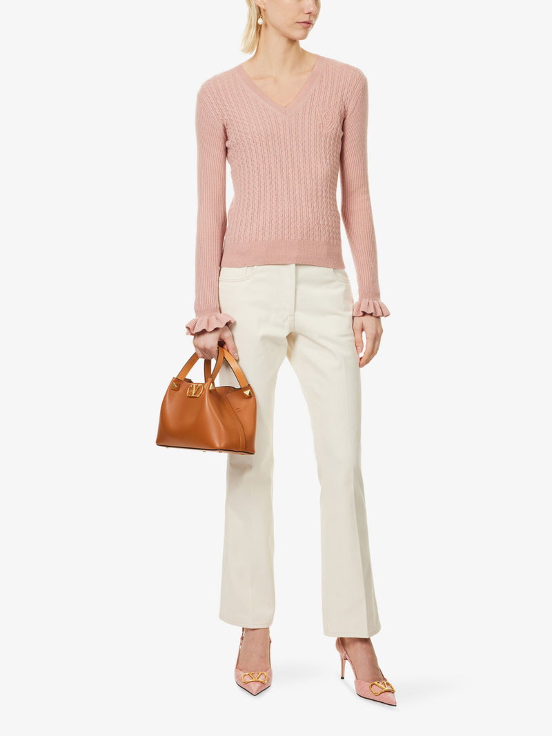 Garavani is better known by his mononym, Valentino. From the signature Rockstud leather shoes to richly embellished dresses, knitwear, tailoring and separates, Valentino Garavani pieces are characterised by a bold and playful use of colour and pattern, with a through line of glamour and luxury.