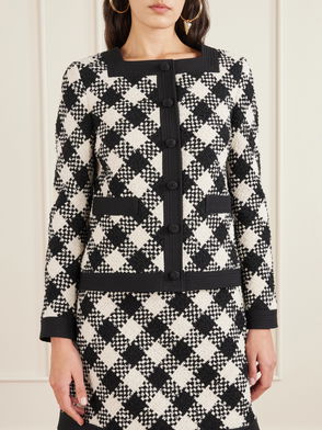 The mesmeric texture of Valentino Garavani's jacket draws you in. It's made from cloqué with gold yarn shimmering across the rich surface – the simplicity of the cut lets the beautiful luster sing.