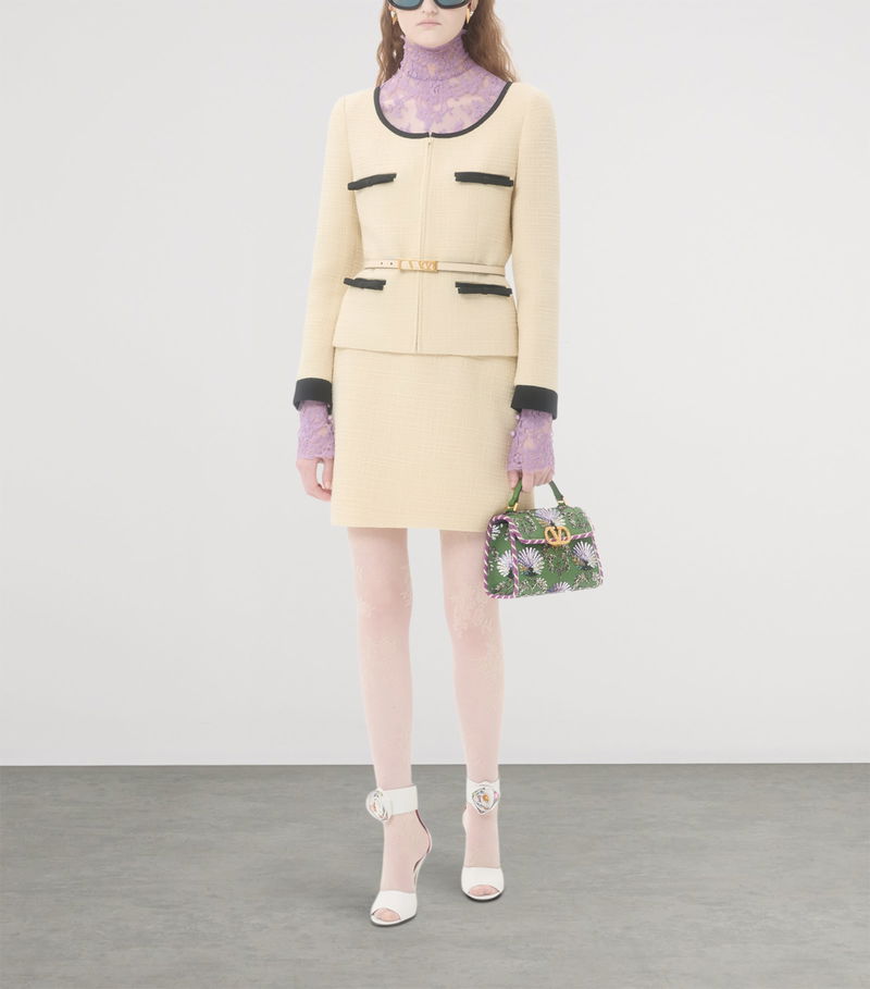 Garavani is better known by his mononym, Valentino. From the signature Rockstud leather shoes to richly embellished dresses, knitwear, tailoring and separates, Valentino Garavani pieces are characterised by a bold and playful use of colour and pattern, with a through line of glamour and luxury.