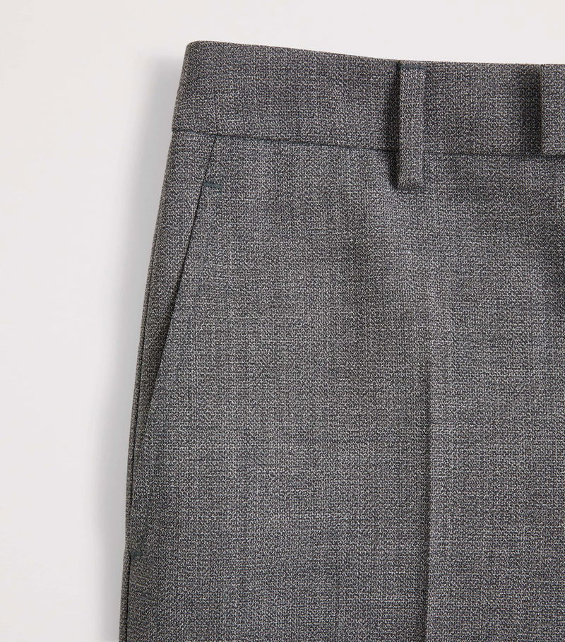 Mouliné yarn is created by twisting together two subtly different tones, producing a refined, lightly marled surface that gives the fabric quiet movement and dimension. Meanwhile, the mohair lends a crisp handle and gentle lustre, ensuring the silhouette remains impeccably smart while revealing its complexity up close.