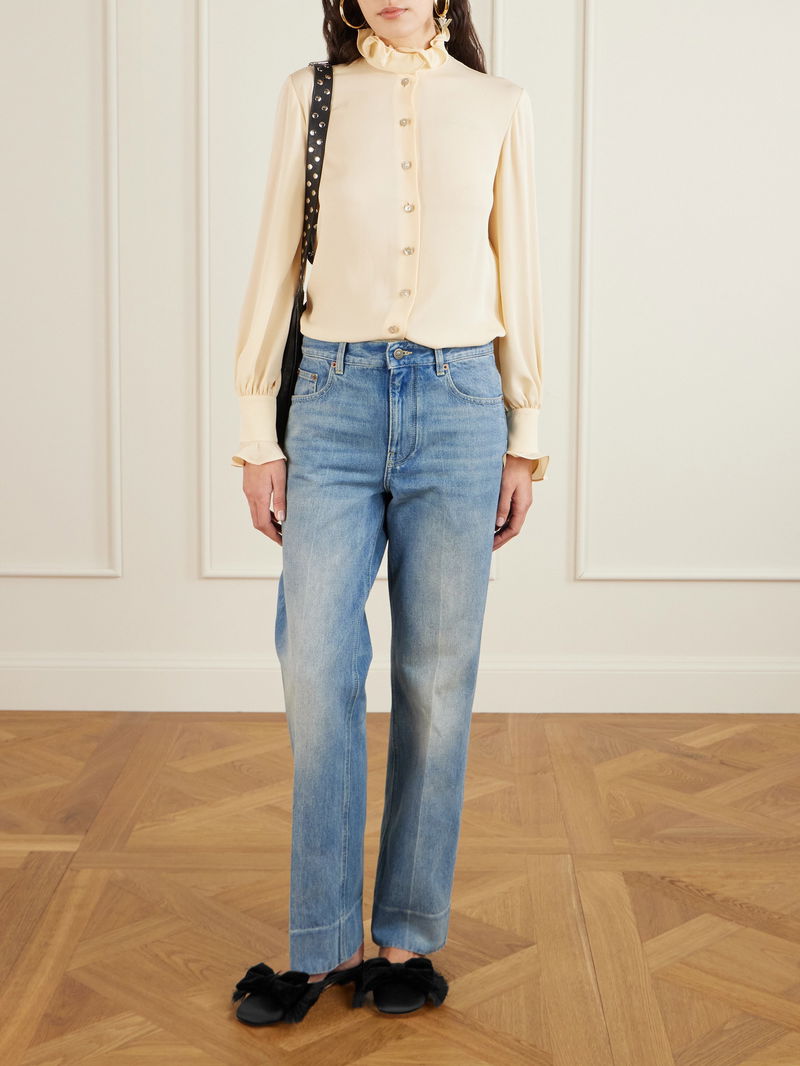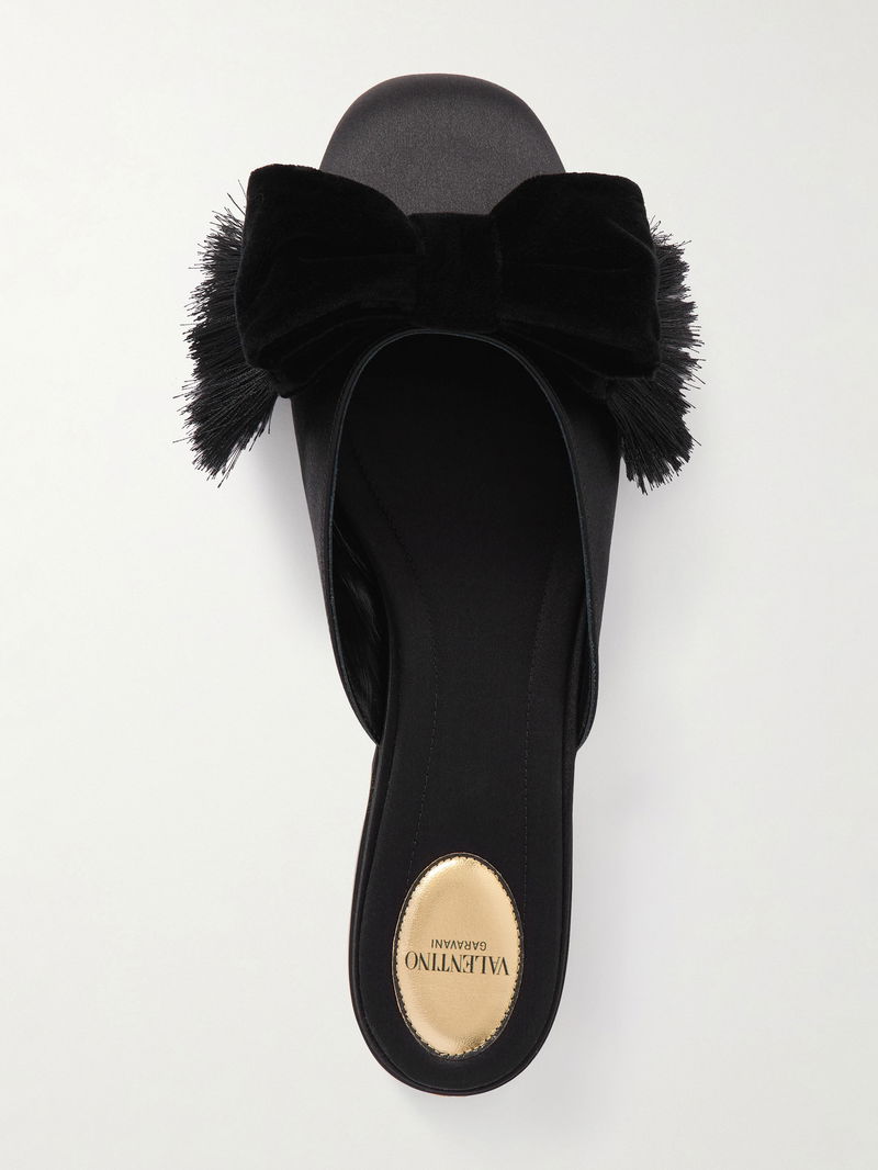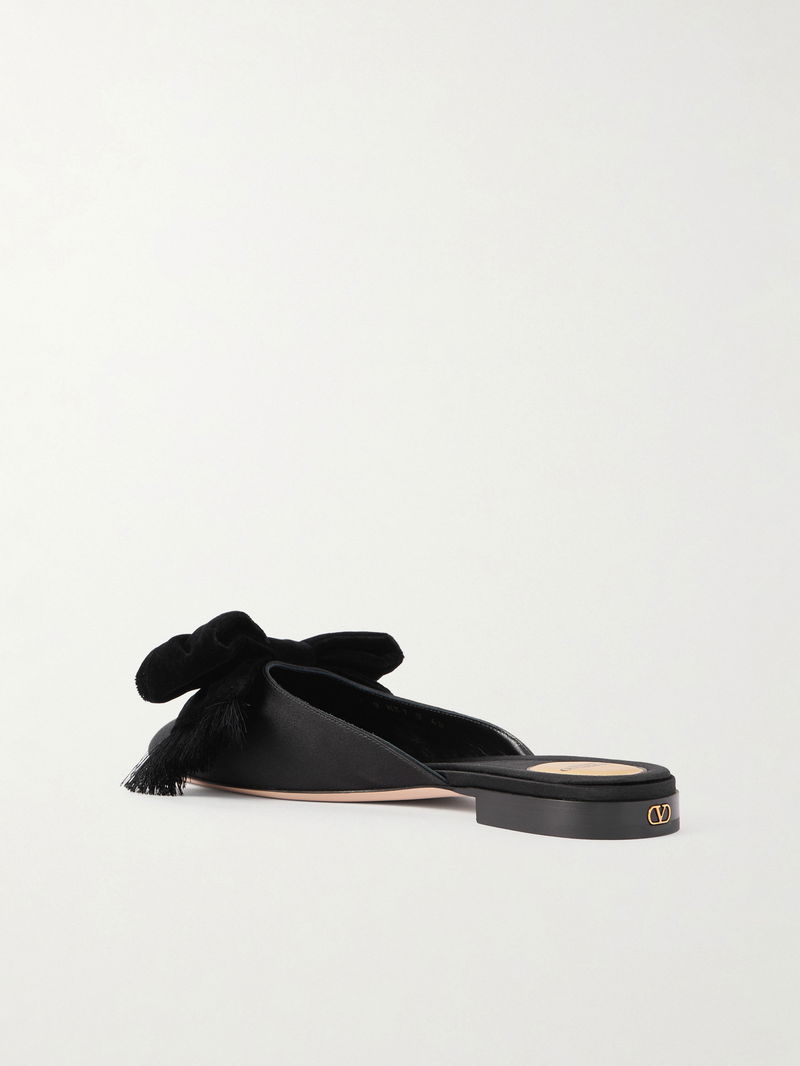 Reinette Bow-Embellished Velvet-Trimmed Satin Mules