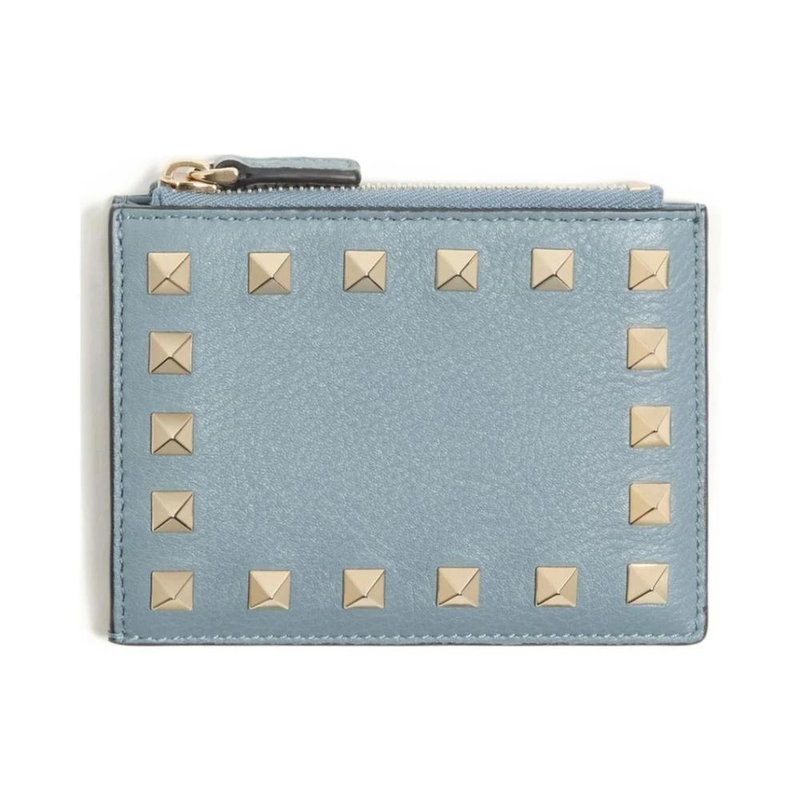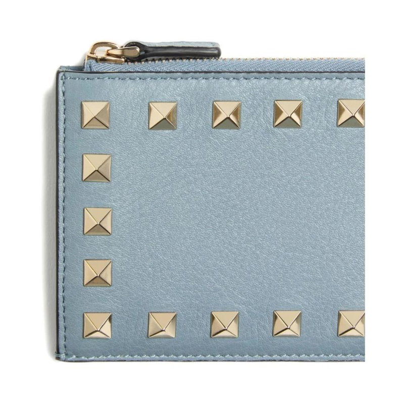 Rockstud Grainy Calfskin Cardholder With Zipper