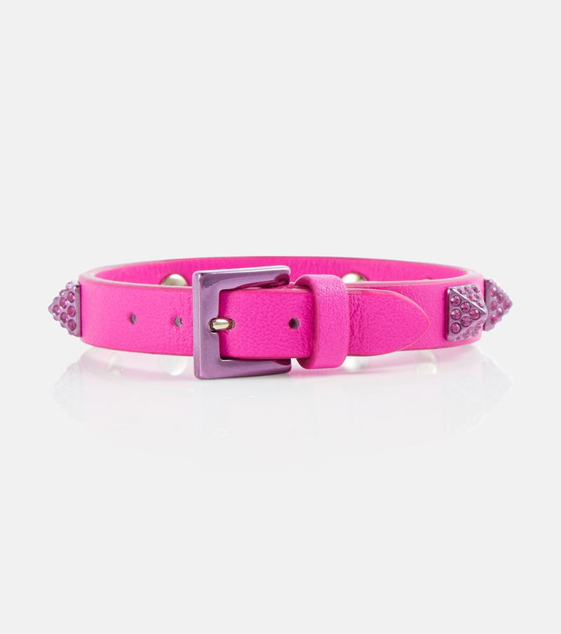 An accessory that will accelerate each and every ensemble, Valentino Garavani's pink leather Rockstud bracelet is an iconic piece. Adjustable buckle fastening ensures a comfortable fit, while the label's signature pyramid-shaped studs end the piece on a luxe note.