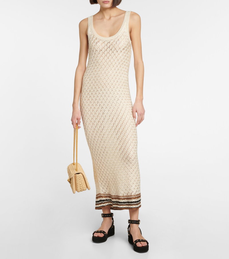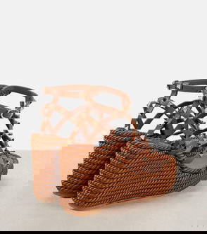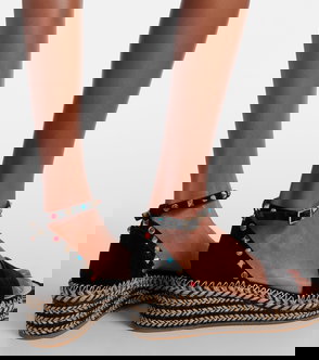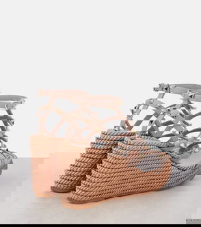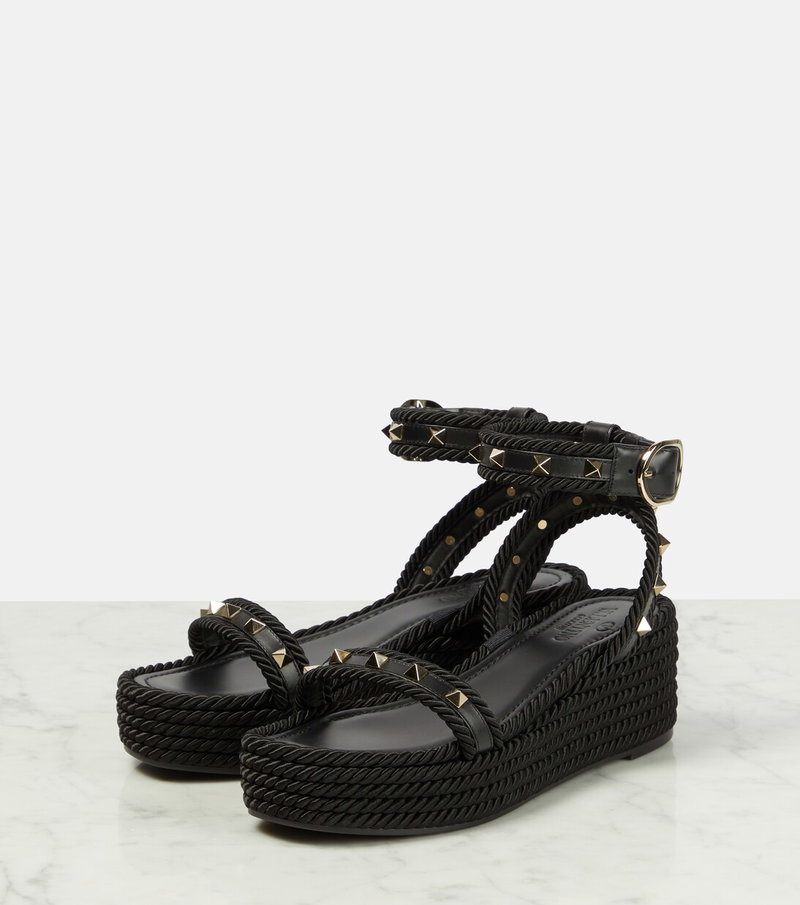 Valentino Garavani looked to ancient architecture to create the now-iconic Rockstud embellishments. The motif embellishes the ankle and vamp straps, offset by rope-effect jute wedge soles.