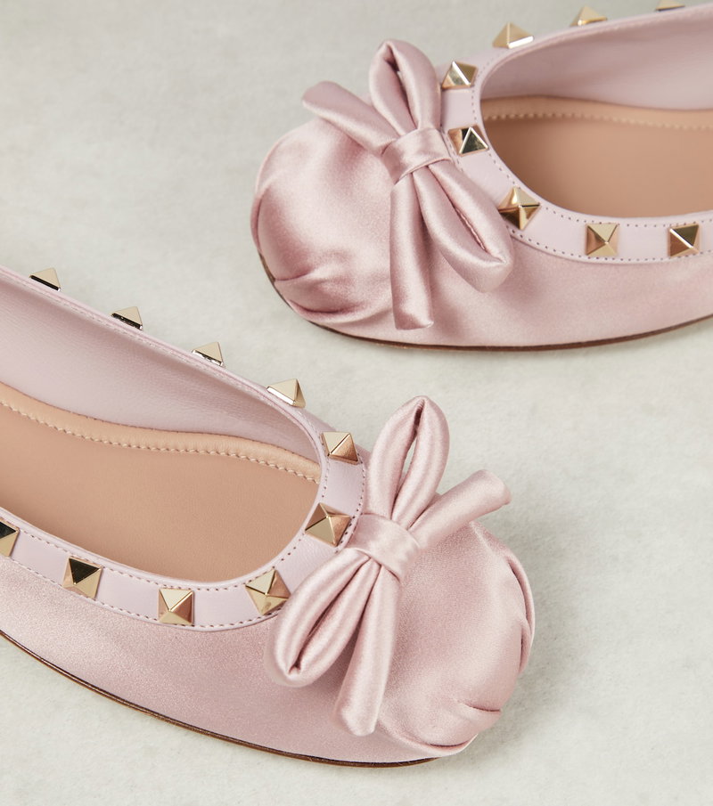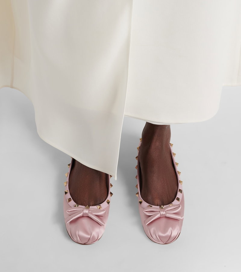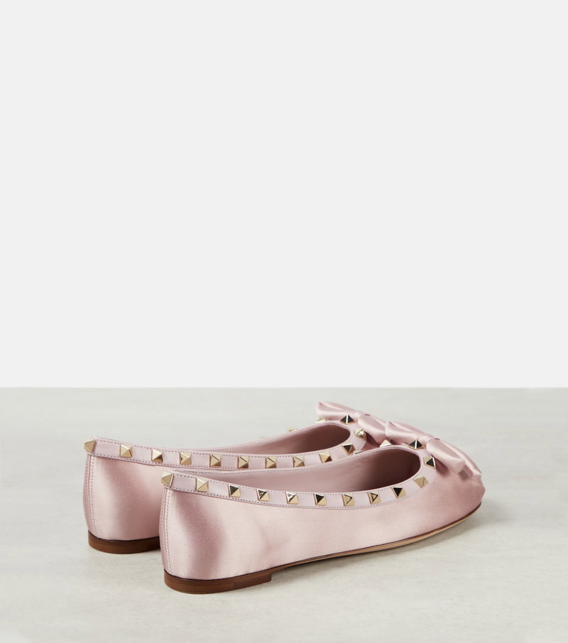 Rockstud Leather-Trimmed Satin Ballet Flats.