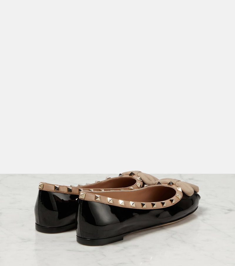 Chic meets edgy in these ballet flats from Valentino Garavani – a striking take on a perennial style. Crafted from glossy patent leather, they feature classic bow detailing and house-signature Rockstud embellishments.