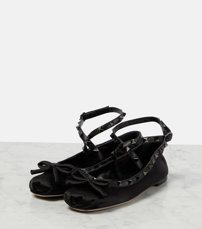 Chic meets edgy in these ballet flats from Valentino Garavani – a striking take on a perennial style. Crafted from lustrous satin, they feature lace-up straps, classic bow detailing, and house-signature Rockstud embellishments.