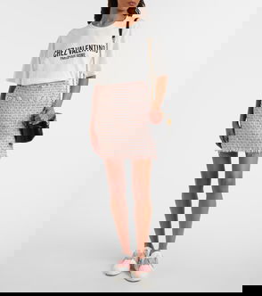 Garavani is better known by his mononym, Valentino. From the signature Rockstud leather shoes to richly embellished dresses, knitwear, tailoring and separates, Valentino Garavani pieces are characterised by a bold and playful use of colour and pattern, with a through line of glamour and luxury.