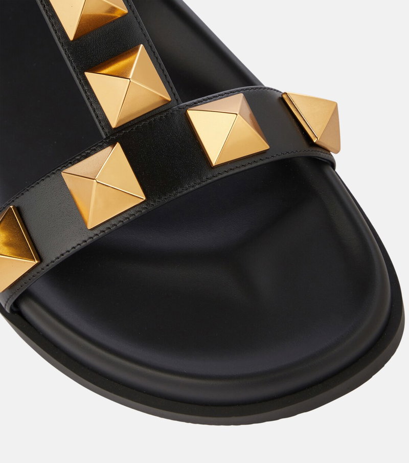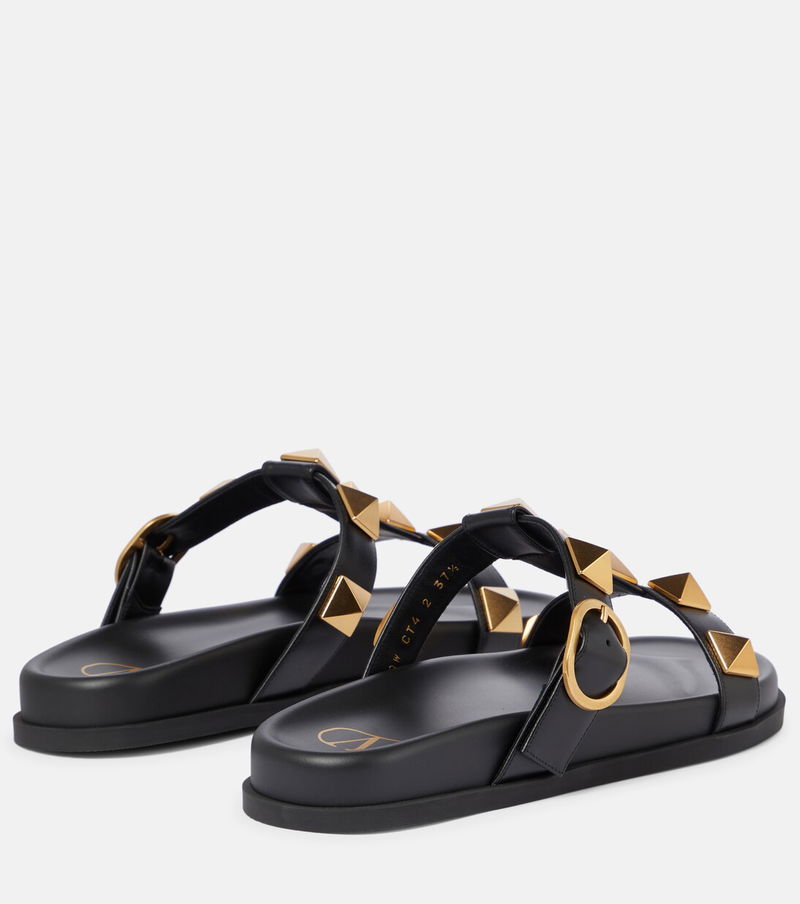 These Roman Stud slides from Valentino Garavani are the perfect balance of comfortable and chic. Made in Italy from black calf leather, they have studded straps and molded footbeds that cushion the feet.