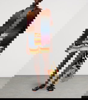 Garavani is better known by his mononym, Valentino. From the signature Rockstud leather shoes to richly embellished dresses, knitwear, tailoring and separates, Valentino Garavani pieces are characterised by a bold and playful use of colour and pattern, with a through line of glamour and luxury.