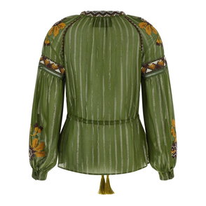 Valentino Garavani's blouse brings a sense of drama to evening dressing. Crafted from lustrous silk, it has elegant draping throughout that frames the loose scoop neckline. Wear yours with stacked pearl jewelry for a touch of maximalism.