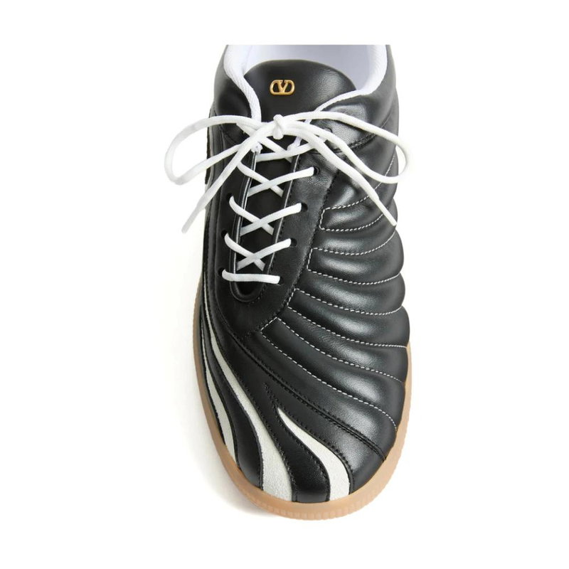 Garavani is better known by his mononym, Valentino. From the signature Rockstud leather shoes to richly embellished dresses, knitwear, tailoring and separates, Valentino Garavani pieces are characterised by a bold and playful use of colour and pattern, with a through line of glamour and luxury.