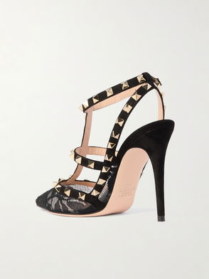 Selfridges Says: "Since debuting in 2010, Valentino’s Rockstud heels have been the coveted pair that’s part romantic, part rock ‘n’ roll and every stiletto lover’s crush. These So Noir courts are crafted from sleek leather with a point toe and correlating high heel, and finished with T-bar straps that are embellished with tonal signature pyramid studs for a more subdued appearance. Wear them to bring innate glamour to cropped jeans and flared dresses alike.
