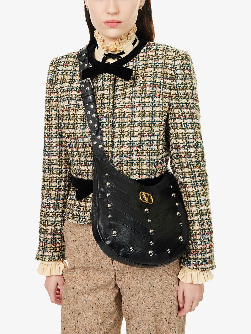 Garavani is better known by his mononym, Valentino. From the signature Rockstud leather shoes to richly embellished dresses, knitwear, tailoring and separates, Valentino Garavani pieces are characterised by a bold and playful use of colour and pattern, with a through line of glamour and luxury.