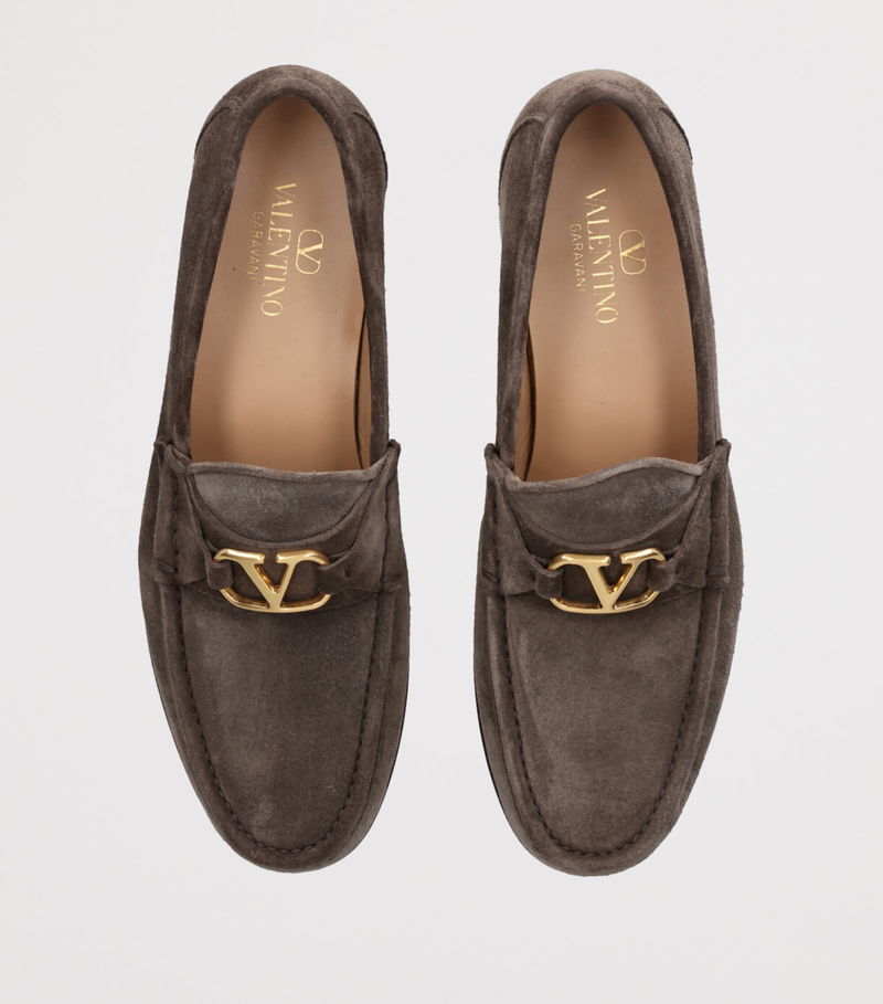 Valentino Garavani first debuted its love for logos in 1968 at the Sala Bianca show and since then, the VLogo has been incorporated into a whole host of the House’s designs for an ornamental touch. These loafers are given the same treatment; they're a perfectly crafted suede pair that sees the motif grace the vamp in gold-tone hardware.