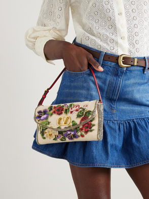 Garavani is better known by his mononym, Valentino. From the signature Rockstud leather shoes to richly embellished dresses, knitwear, tailoring and separates, Valentino Garavani pieces are characterised by a bold and playful use of colour and pattern, with a through line of glamour and luxury.