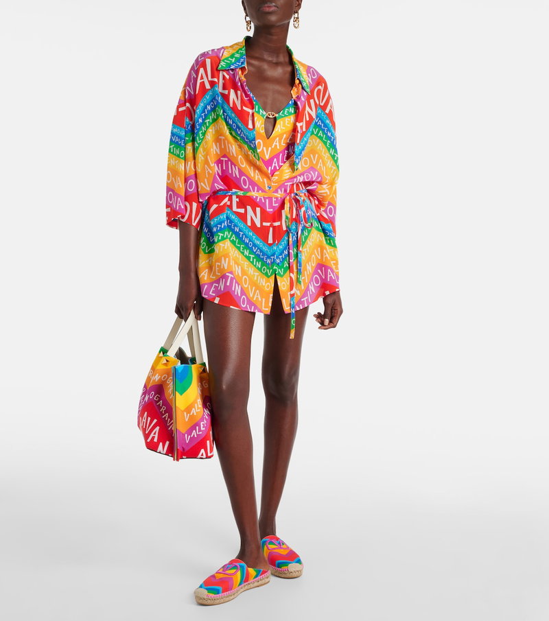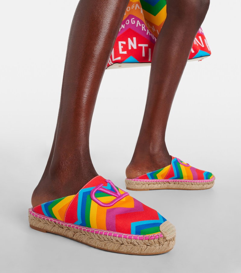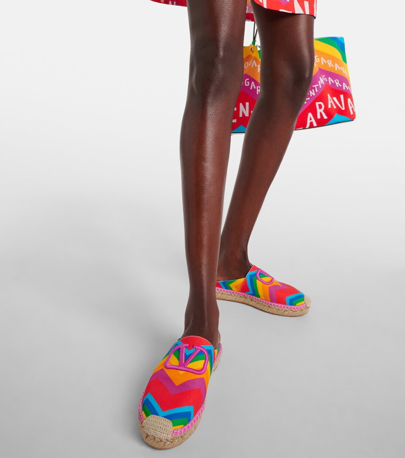Garavani is better known by his mononym, Valentino. From the signature Rockstud leather shoes to richly embellished dresses, knitwear, tailoring and separates, Valentino Garavani pieces are characterised by a bold and playful use of colour and pattern, with a through line of glamour and luxury.