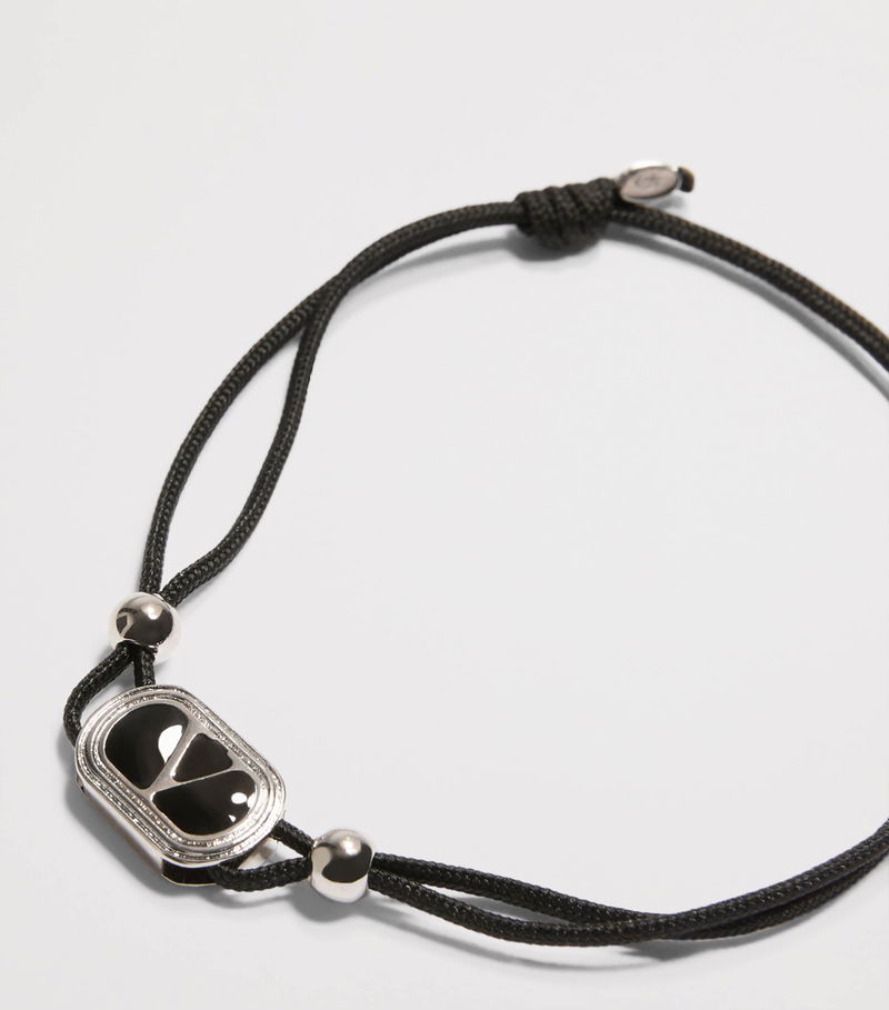 When you think of Valentino Garavani, what comes to mind? Could it perhaps be its inimitable V-shaped clasp - also known as the VLogo Signature - that adorns the House's iconic handbags. If so, you'll be more than pleased to note that the exquisite detail is the focal point of this corded bracelet, bringing a hint of the brand's renowned sophistication to an everyday accessory.