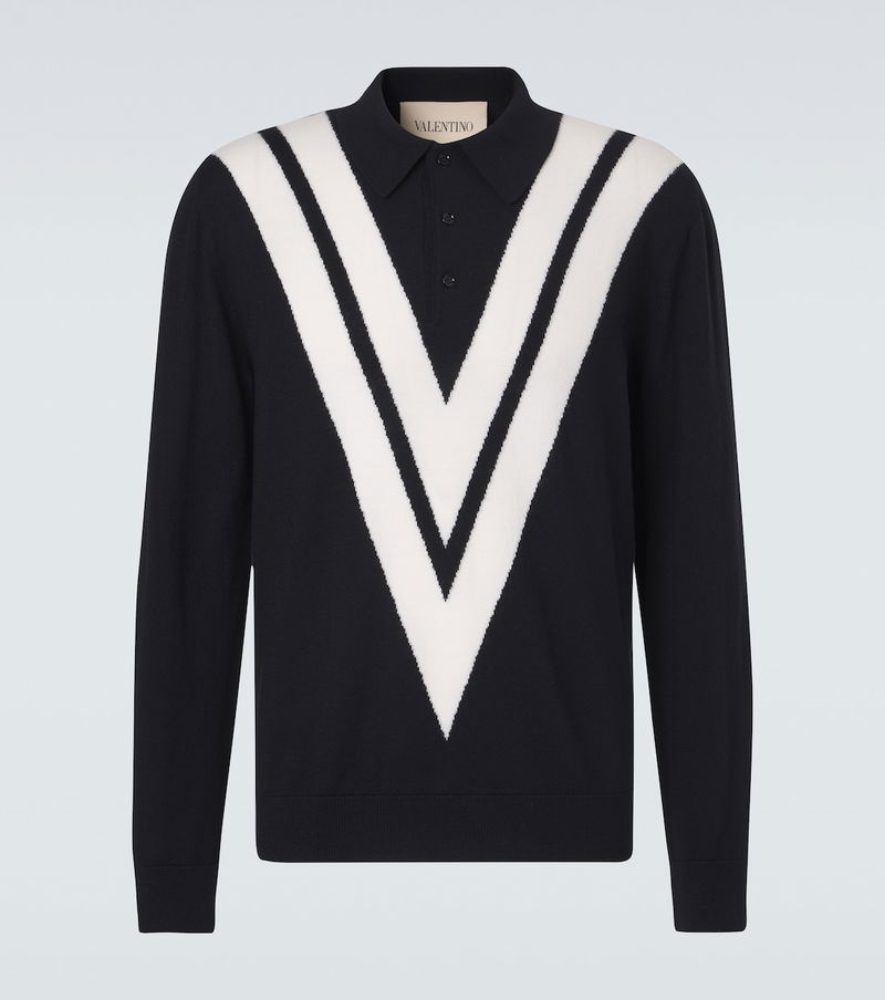 Valentino has become a symbol of crafting excellence, creativity, and uniqueness. This polo sweater is made in Italy from virgin wool and showcases a contrasting V-shaped pattern.