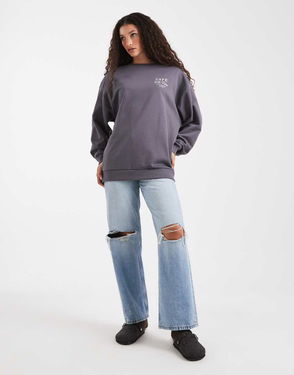 Crew neck. Long sleeves. Logo embroidery to chest. Oversized fit. Unisex style.
