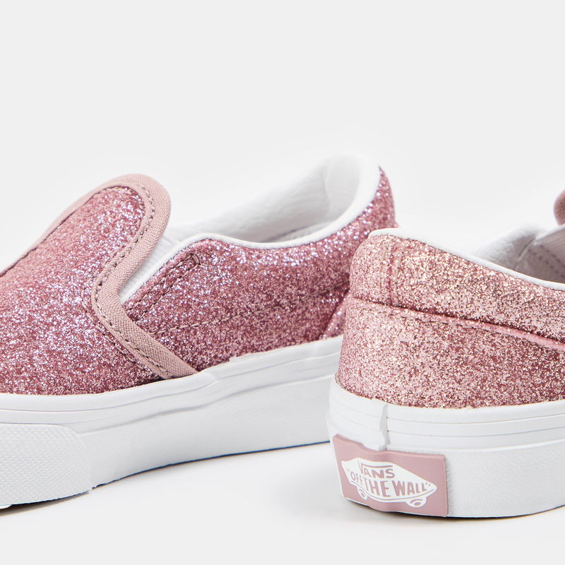 Vans' Glitter Slip-On Unisex Kids' Trainer brings together classic skate design with contemporary style. The metallic finish adds subtle dimension while the slip-on design provides practical ease of wear for children's casual activities.