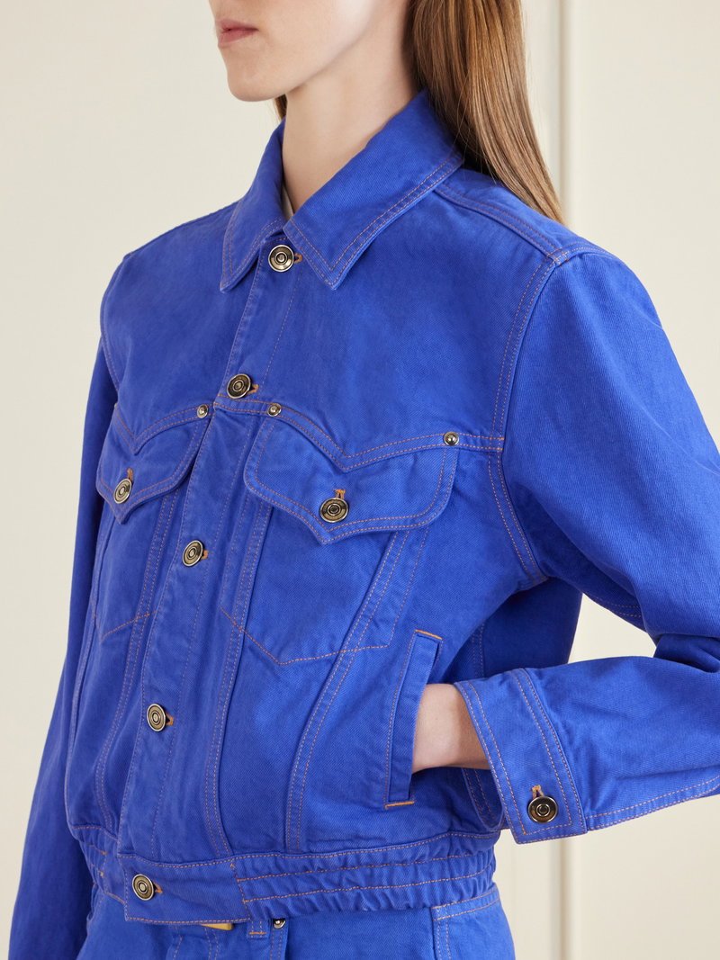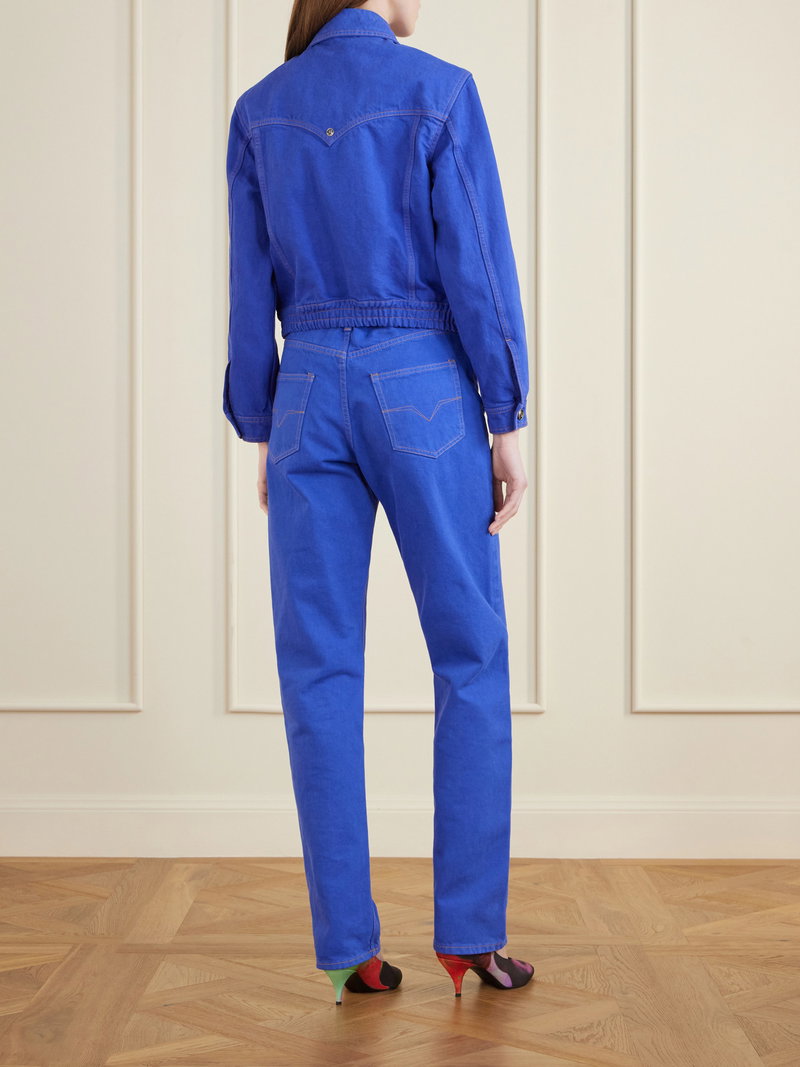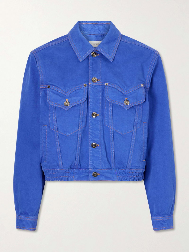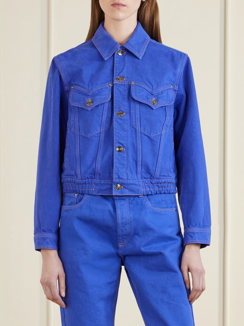 Versace's jacket takes a romantic turn with heart-shaped front flap pockets. Made from denim, it follows classic trucker styles and is finished with a gathered hem that creates a more defined fit.