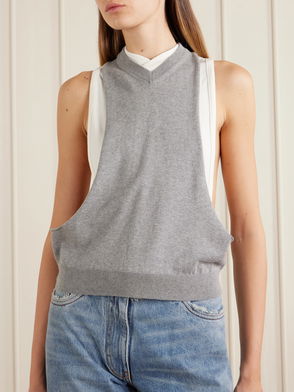 Embroidered Wool Ribbed Knit T-shirt